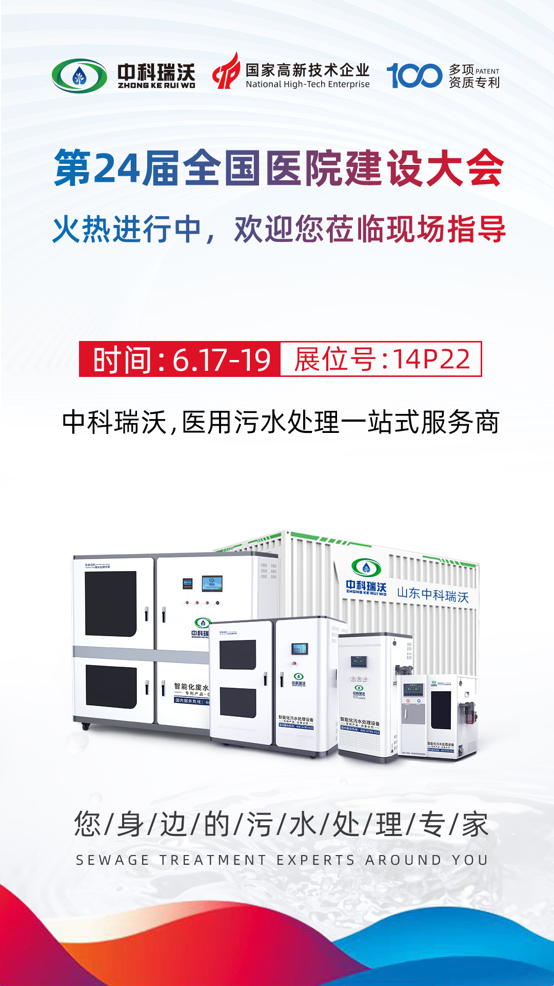 此次展会为期三天,6月17-6月19号您都可以莅临全国医院建设大会美加墨世界杯官网展位,美加墨世界杯官网 将为您提供专业系统化的医用污水解决方案!